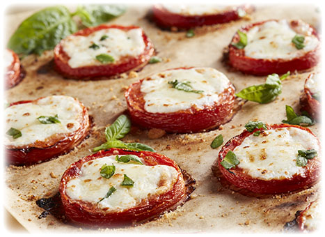Place the slices of tomato onto a parchment lined baking sheet. Top tomato slices with BelGioioso Fresh Mozzarella and a sprinkle of grated BelGioioso Parmesan. Broil until cheese is melted and tomatoes start to caramelize. Remove from oven and let cool a minute. Garnish with fresh basil and serve as an appetizer, side or salad topper.